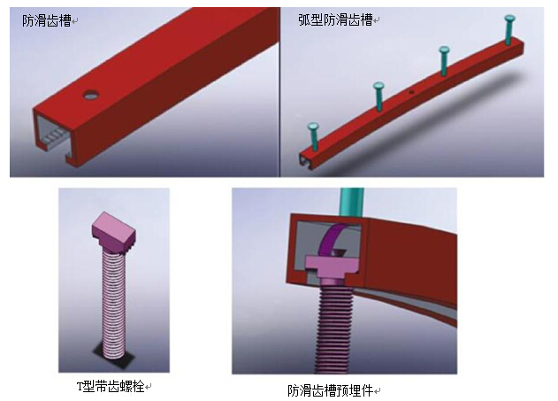使用。目前這種防滑齒槽已經(jīng)國(guó)產(chǎn)化,產(chǎn)品經(jīng)過(guò)國(guó)家建筑工程質(zhì)量監(jiān)督檢測(cè)中心檢測(cè),單個(gè)螺