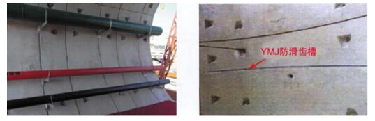 量也無(wú)法保證。采用管片預(yù)埋防滑齒槽安裝方法完全解決了這一技術(shù)難題、有效的保證了安
